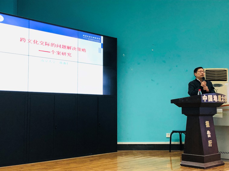 张伶俐教授。讲座主题为:跨文化交际中的问题解决策略——个案研究。全院教师和部分本科生、硕士生一同聆听了陈教授的精彩讲解。