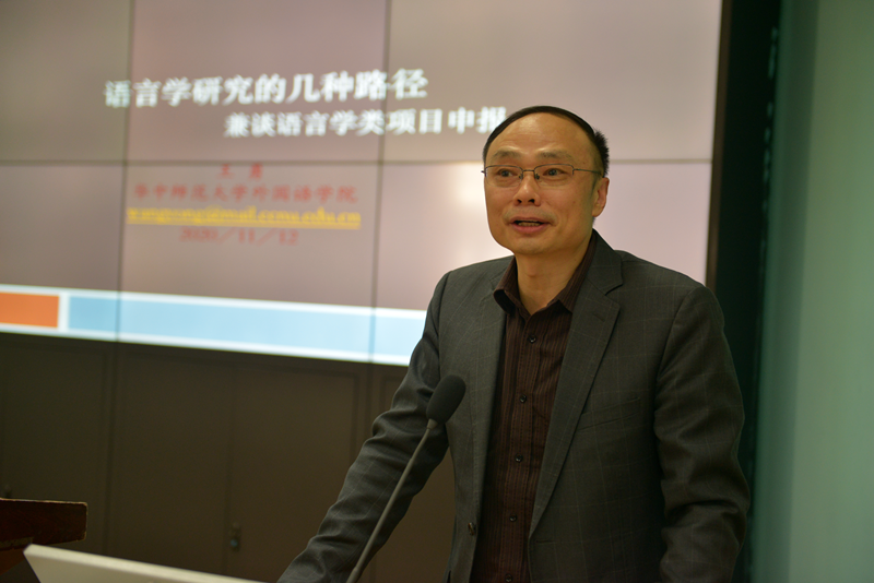 接着,王勇教授介绍了语言学研究的不同领域,结合自身的科研项目“存在句的类型学研究”等,详细分析了如何学习并借用西方理论,来解决汉语相关问题,并以此进一步发展汉语语言学理论,从而反哺世界语言学。此外,王勇教授还特地总结了2018-2020三年来语言学类国家社科项目的五大特点:1.语言为本;2.问题导向,关注当下;3.学科交叉; 4.大数据和新技术;5.融合创新;以及两大热门领域:中国话语与文化和中国境内的语言资源。为我校外院师生提供了良好的语言研究方向与思路,有利于未来的项目申报。