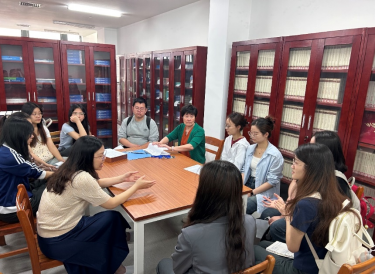 副院长杨红燕、英语系教师江敏带领“多语种地学文献翻译项目组”的14名英语专业本科生和研究生代表赴学校图书馆,与图书档案与文博部副部长张峰、图书馆教师张凌云、校史馆教师苏玉微等就馆藏外文地学文献翻译项目展开专题座谈,并共同探讨协同育人新模式。