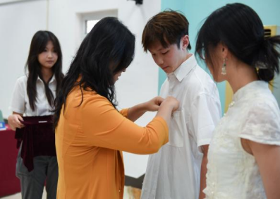 班主任是思想政治教育和学业帮扶指导的重要力量。院党委书记傅苑为新生班主任代表陶惟颁发班主任聘书,并为新生代表文豪、李凌妍佩戴校徽。