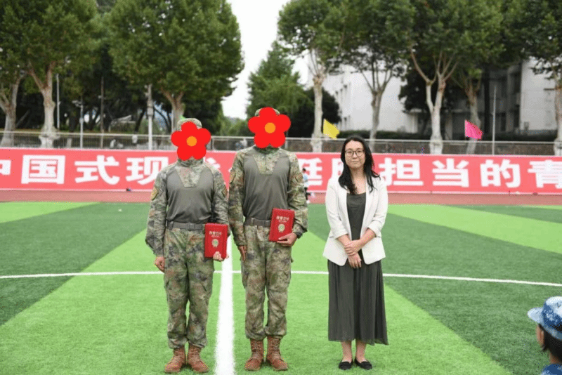 傅苑为在本次军训中表现突出、尽职尽责的三位“优秀教官”尹昭颺、张方舟、马赫然颁发荣誉证书,感谢他们严格的训练与无私的奉献。