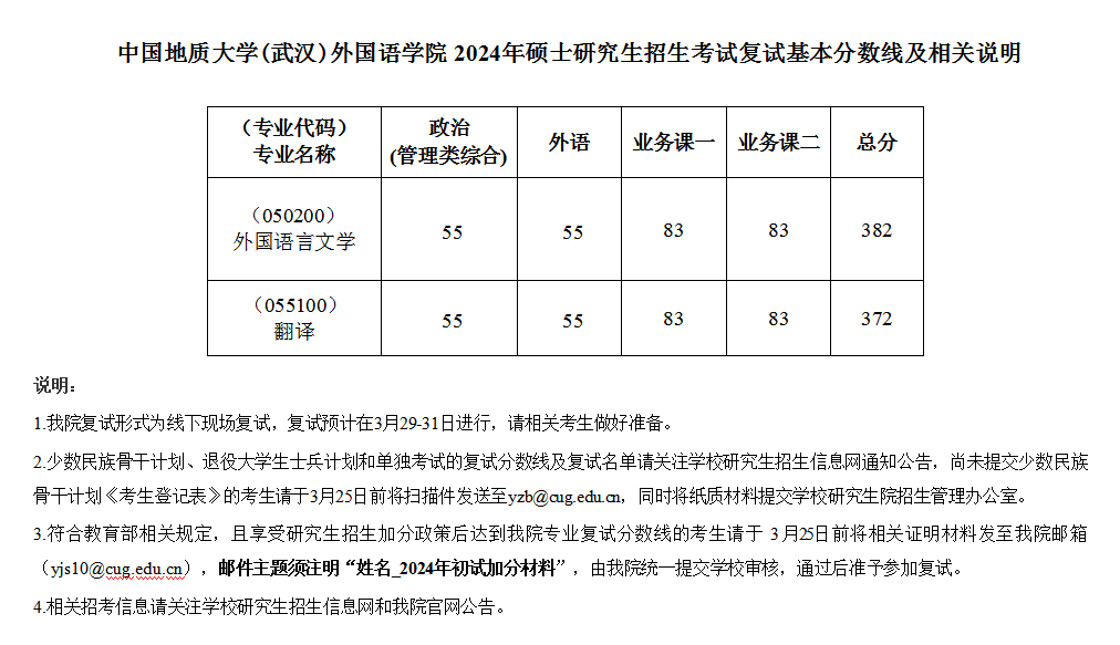 番号鸽 2024年硕士研究生招生考试复试基本分数线及相关说明